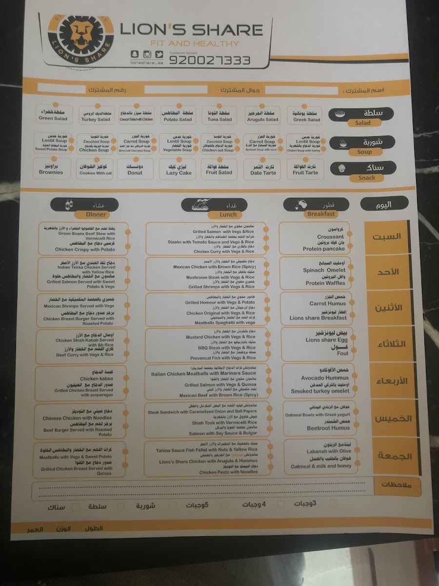 The menu at Lion's Share offers a delightful variety of dishes catering to diverse tastes. For those seeking plant-based options, the Chickpea Tajine with Eggplant is a standout. Seafood lovers can enjoy the Shrimp Sayyadiah or the Fish Tagine, along with the Tahina Fish Fillet with Yellow Rice and Nuts, Grilled Salmon with Sweet Potato and Vegs, and the tangy Lemon Fish Fillet with Veg and Rice. The sandwich selection is equally tempting, featuring the Shawarma Beef, Chicken Club Sandwich, and the indulgent Steak Sandwich with Caramelized Onion and Bell Peppers. For a comforting meal, try the Italian Chicken Meatballs with Marinara Sauce or the classic Beef Burger with Roasted Potato. If you're in the mood for chicken, the Sweet Chili Chicken, Crispy Chicken, and Chicken Kabsa are excellent choices, alongside pasta dishes like the Fettuccine Alfredo Chicken and Grilled Chicken with Lemon & Almond Sauce. The restaurant's salad offerings, including the Caesar Salad, Beetroot Salad, and Fattoush Salad, provide refreshing options. Those with a sweet tooth can indulge in treats such as the Muffin Cake Protein Vanilla, Lazy Cake, and Cookies with Oats. For meat enthusiasts, the Beef Steak with Mushroom Sauce, BBQ Steak with Mashed Potato and Vegetables, and the Cheese Meatballs Spaghetti with Vegs are sure to satisfy. The breakfast menu offers a variety of satisfying options, such as the Croissant with Cheese, Spinach Omelette with Sweet Potato, and the Smoked Turkey Omelette. The restaurant also serves hearty soups, including the Sweet Potato Chicken Soup and Indian Lentil Soup. With its diverse and flavorful offerings, Lion’s Share promises a memorable dining experience for every palate.